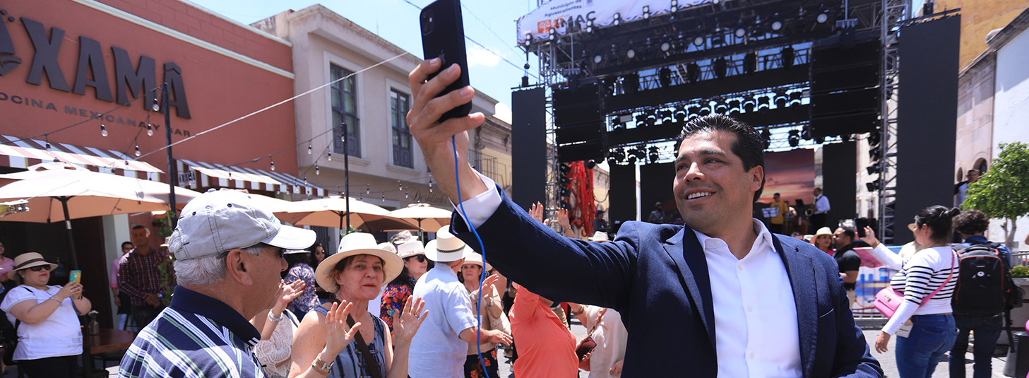 Con la finalidad de que la comitiva del Encuentro de Ciudades Hermanas, conocieran los principales atractivos de la FNSM, Leo Montañez encabezó el recorrido por el Corredor Cultural, visitaron el emblemático Jardín de San Marcos y conocieron las instalaciones del Casino y Palenque de la FNSM.