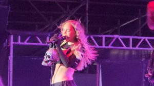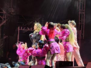 Pasadas las 9 pm la cantante salío al escenario para comenzar su show ante más de 30 mil asistentes en la FNSM 2023. Temas que la han colocado en el gusto del público atravez de los años, estuvieron presentes.  Temas de telenovelas que protagonizó a inicios de su carrera artística, como “Amigos por siempre”, “Cómplices al rescate”,  no pueden faltar en sus conciertos ya que su público siempre los pide. Adémas de temas como “Muriendo lento”, “Bella traición”, “Egoísta”, “Si no te quisiera”, “Luz sin gravedad”, “Ángel”, entre otros.