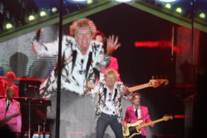 Con su particular forma de vestir estilo Las Vegas, el cantante salió al escenario, luciendo un saco blanco y negro, pantalón a rayas y luciendo su rubia cabellera que lo caracterizan. Músicos, coristas, acompañantes y baile, estuvieron rodeando al cantante durante más de una hora y media. El cantante, conocido por su enérgica y apasionada interpretación, deleitó a la audiencia con algunos de sus temas más emblemáticos como ««Forever Young», «Passion», «Do Ya Think I’m Sexy?», «Maggie May» y «Tonight’s the Night».