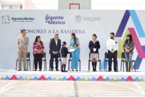 Al rendir honores a la bandera en la Escuela Primaria Temachtiani de la colonia Lomas del Mirador 1.ª sección, la gobernadora de Aguascalientes, Tere Jiménez, inauguró una biblioteca en el plantel y reconoció el esfuerzo de los alumnos, docentes y padres de familia por seguir impulsando el sistema educativo.