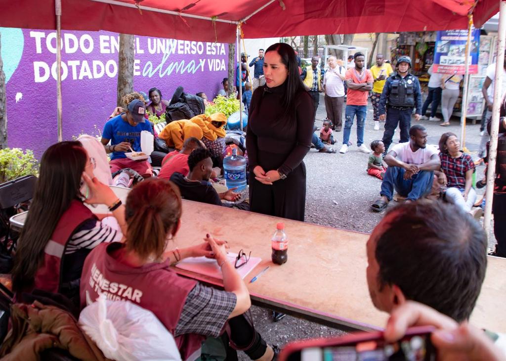 La Alcaldesa de Cuauhtémoc, Sandra Cuevas visitó la Plaza Giordano Bruno para constatar el cúmulo de migrantes que llegan a este sitio y se dirigió al módulo del Gobierno de la Ciudad para preguntar acerca de la ayuda que darían a los migrantes.
