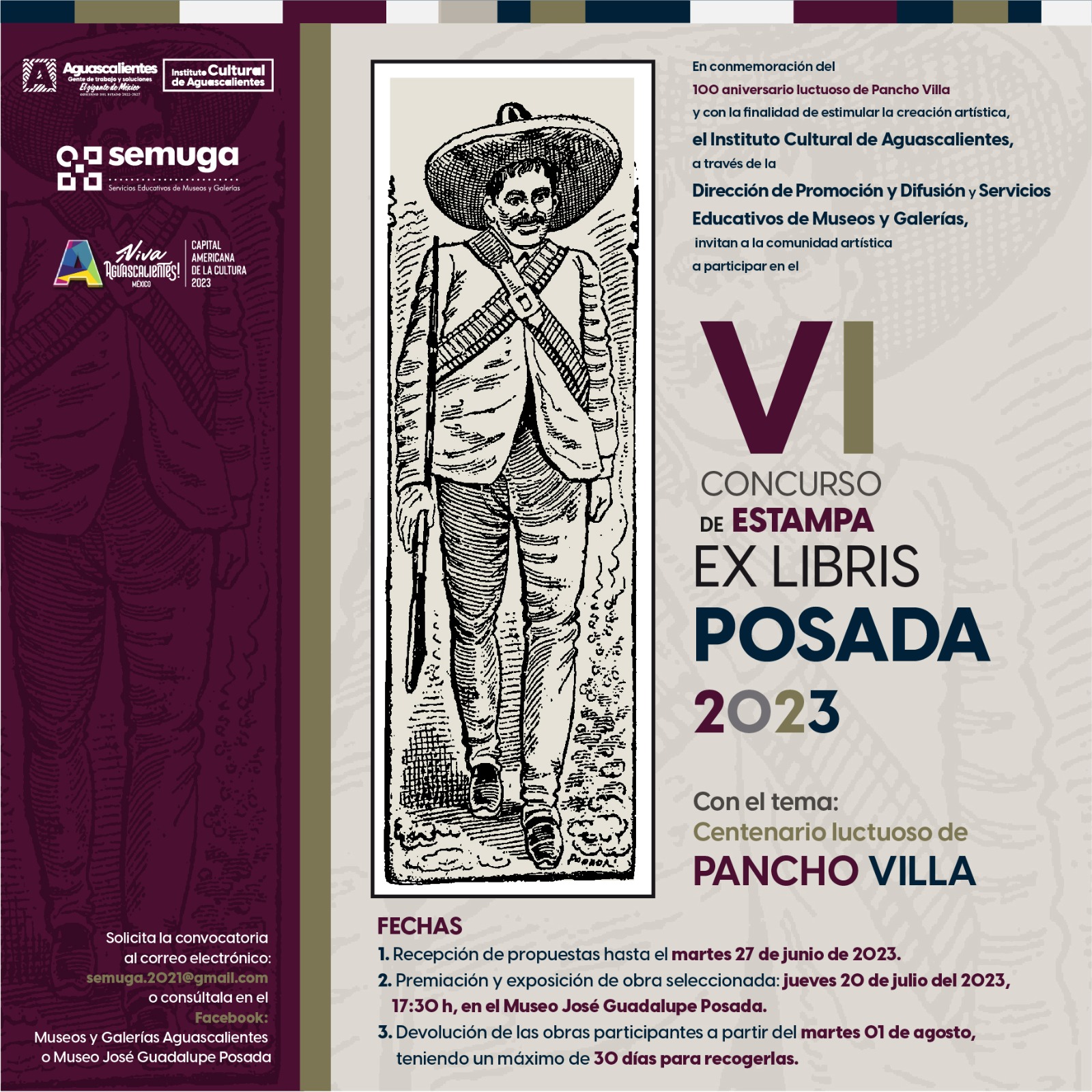 A toda la comunidad artística las y los invitamos a participar en el “VI CONCURSO DE ESTAMPA EX LIBRIS POSADA 2023”. Con el tema: Centenario Luctuoso de Pancho Villa.