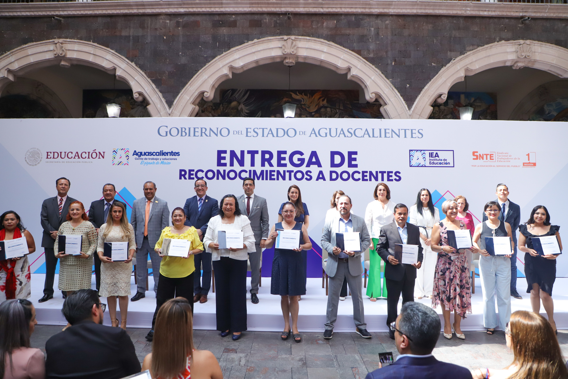A la entrega de reconocimientos también asistieron la directora del IEA, Lorena Martínez; el líder de la Sección 1 del SNTE, Ramón García Alvizo; el presidente municipal de Aguascalientes, Leonardo Montañez Castro; el diputado Salvador Maximiliano Ramírez Hernández, presidente de la Mesa Directiva del H. Congreso del Estado, así como autoridades educativas en la entidad.