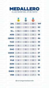 Aguascalientes en el top 5 del medallero de Nacionales CONADE ¡Felicidades a los atletas y sus familias, entrenadores, cuerpo técnico...