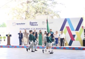 Al rendir honores a la bandera en la Secundaria General No. 2 “José Clemente Orozco”, la gobernadora de Aguascalientes,...