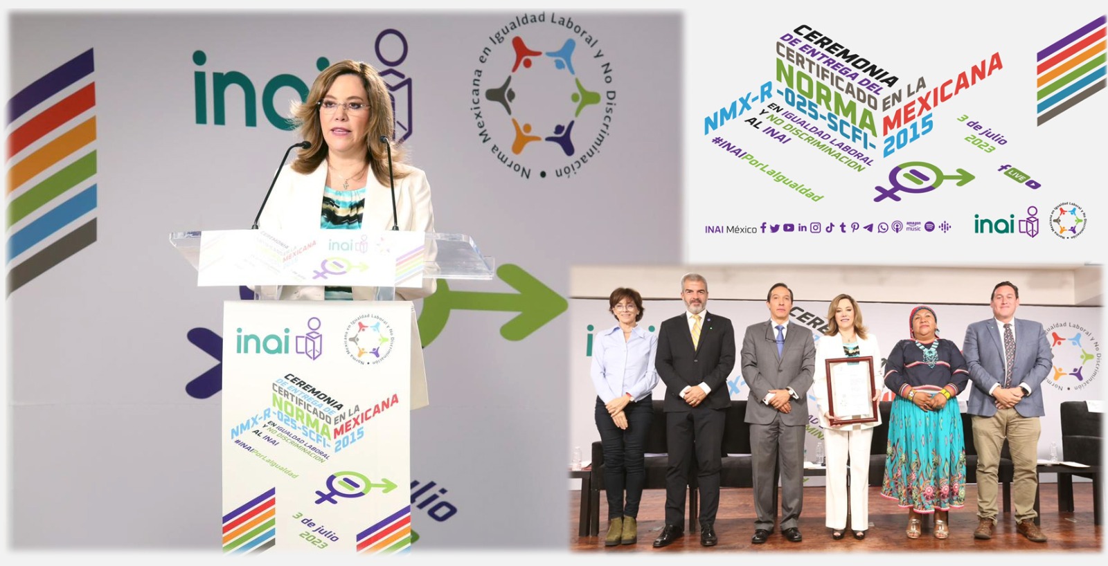 El Instituto Nacional de Transparencia, Acceso a la Información y Protección de Datos Personales (INAI) obtuvo la Certificación en la Norma Mexicana de Igualdad Laboral y No Discriminación (NMX-R-025-SCFI-2015).