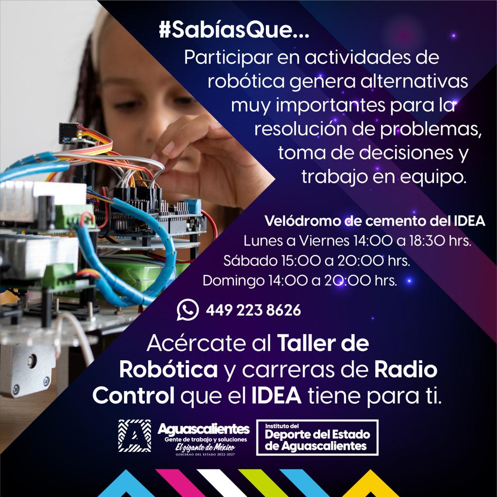 El Instituto del Deporte del Estado de Aguascalientes (IDEA) invita a toda la población a participar de forma gratuita en el Taller de Robótica y Carreras de Radio Control.