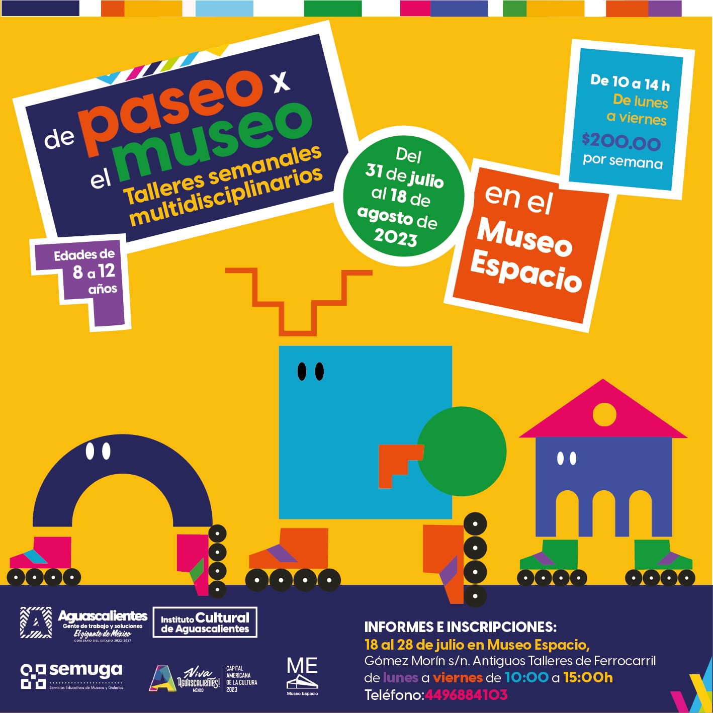 Ven a aprender y divertirte a los talleres semanales multidisciplinarios “De paseo por el museo” del 31 de julio al 18 de agosto de 10 a 14h de lunes a viernes en el Museo Espacio, para niñas y niños de edades de 8 a 12 años, con un costo semanal de $200 pesos. 👧🧒