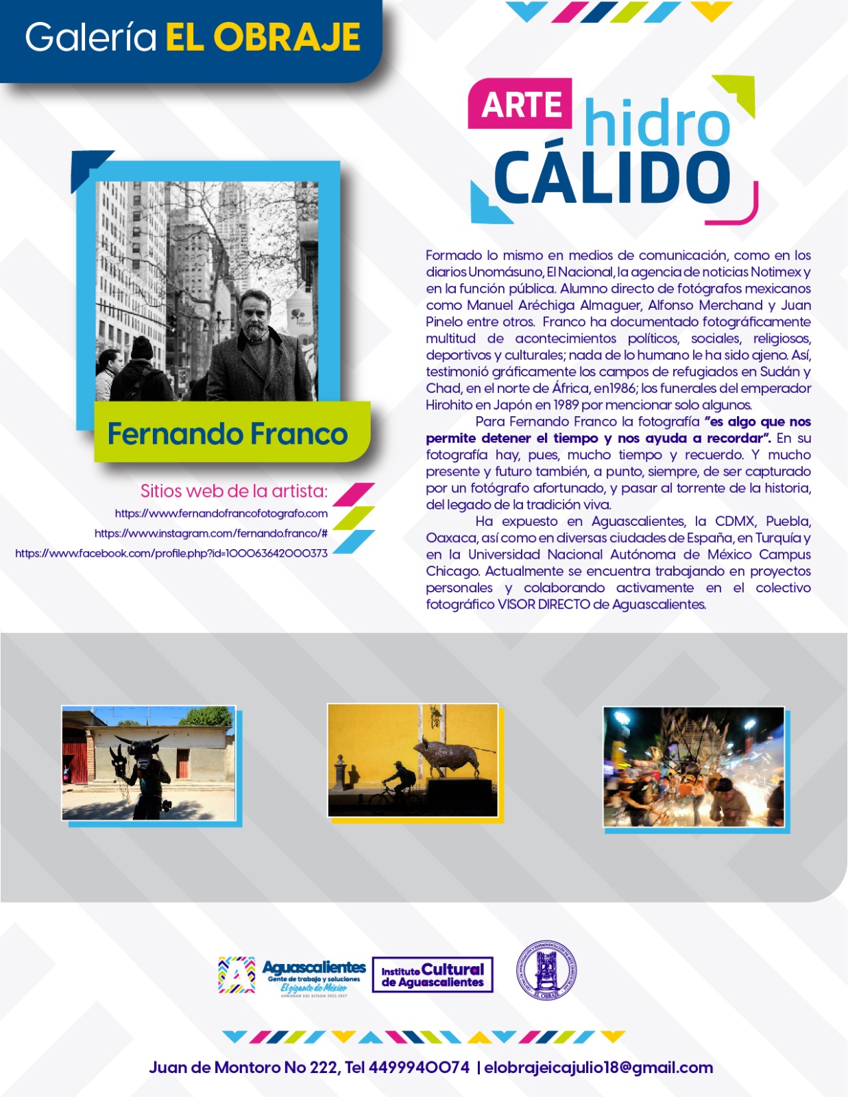 Conoce mas del Arte hidrocálido, en esta ocasión el fotógrafo Fernando Franco nos platica que la fotografía es algo que nos permite detener el tiempo y nos ayuda a recordar ya que en su fotografía hay mucho tiempo y recuerdo.