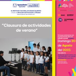 con la participación del coro infantil y juvenil Compáz, este domingo 20 de agosto a las 14h en la explanada gastronómica de Tres Centurias (a un costado del Museo Ferrocarrilero de Aguascalientes).