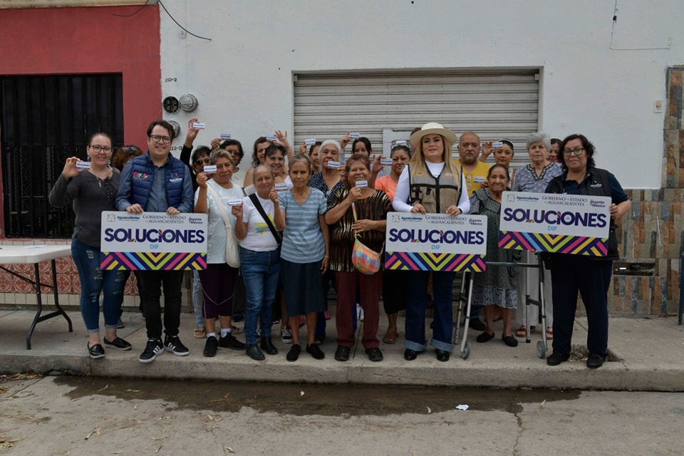 La Tarjeta Soluciones trae grandes beneficios a los vecinos de la colonia Martínez Domínguez, la presidenta del Sistema DIF Estatal, Aurora Jiménez Esquivel, les entregó este documento para que accedan a los apoyos médicos y descuentos en negocios participantes. #ElGiganteDeMéxico