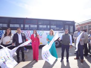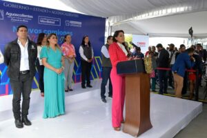 La gobernadora de Aguascalientes, Tere Jiménez, dio el banderazo de arranque a 25 nuevos camiones YoVoy y puso en marcha...