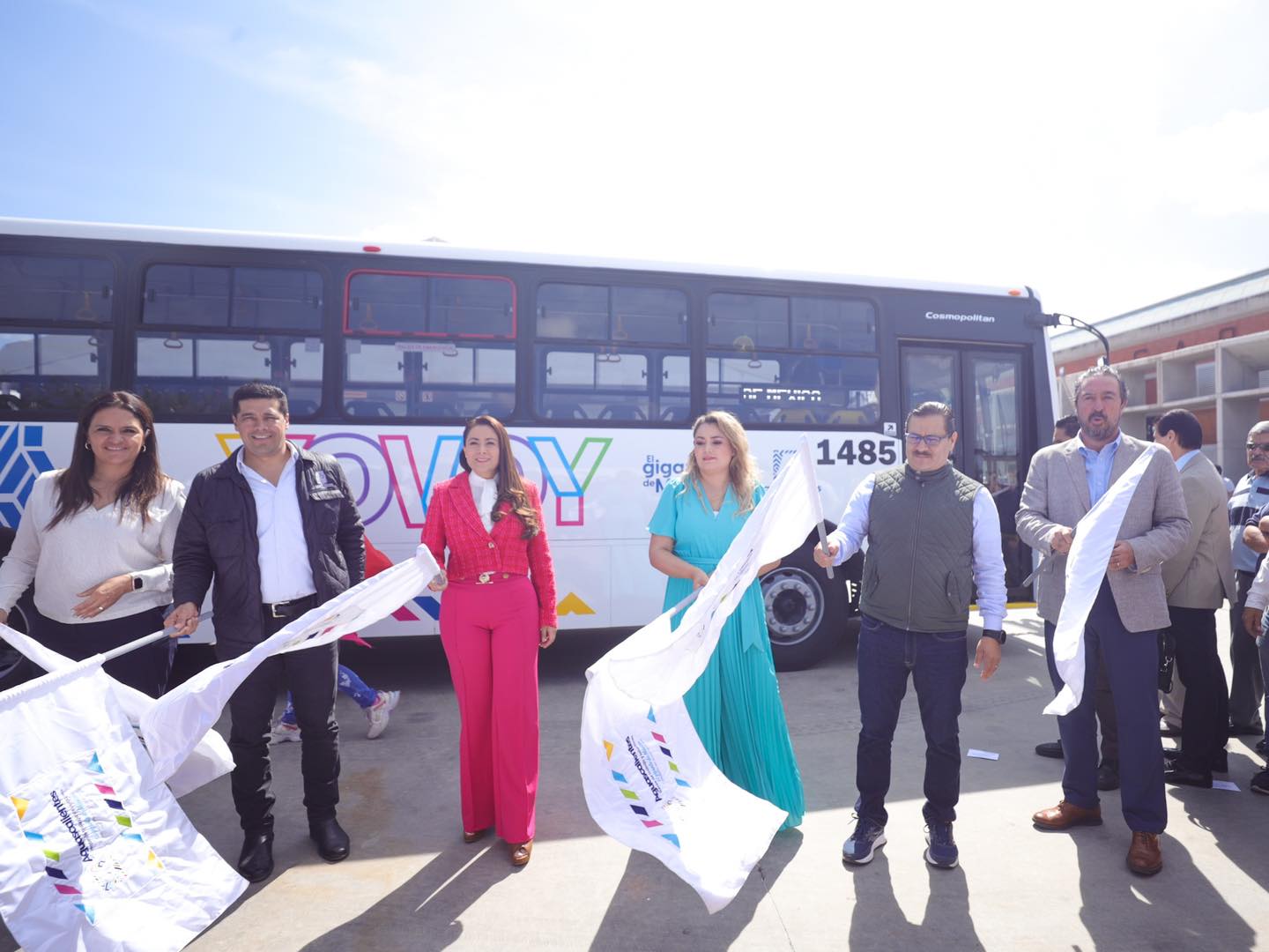 La gobernadora de Aguascalientes, Tere Jiménez, dio el banderazo de arranque a 25 nuevos camiones YoVoy y puso en marcha el sistema de transbordo en el transporte urbano, con lo que se avanza en el proceso de modernización y dignificación que se lleva a cabo en la prestación de este servicio.