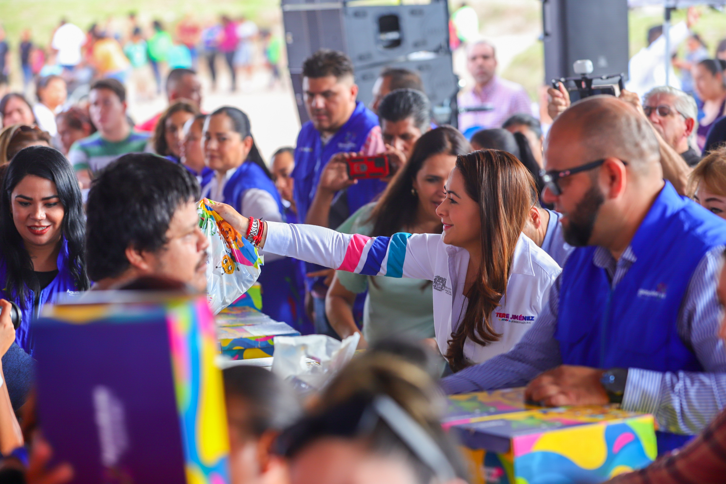 “Con la educación van a poder conquistar el mundo; sus mamás y papás se esfuerzan a diario para que ustedes cumplan sus metas y sueños, mientras nosotros nos encargamos de que reciban educación de calidad”, les dijo la gobernadora de Aguascalientes, Tere Jiménez, a estudiantes de las colonias Rodolfo Landeros, Villa Montaña y Villas de Nuestra Señora de la Asunción.