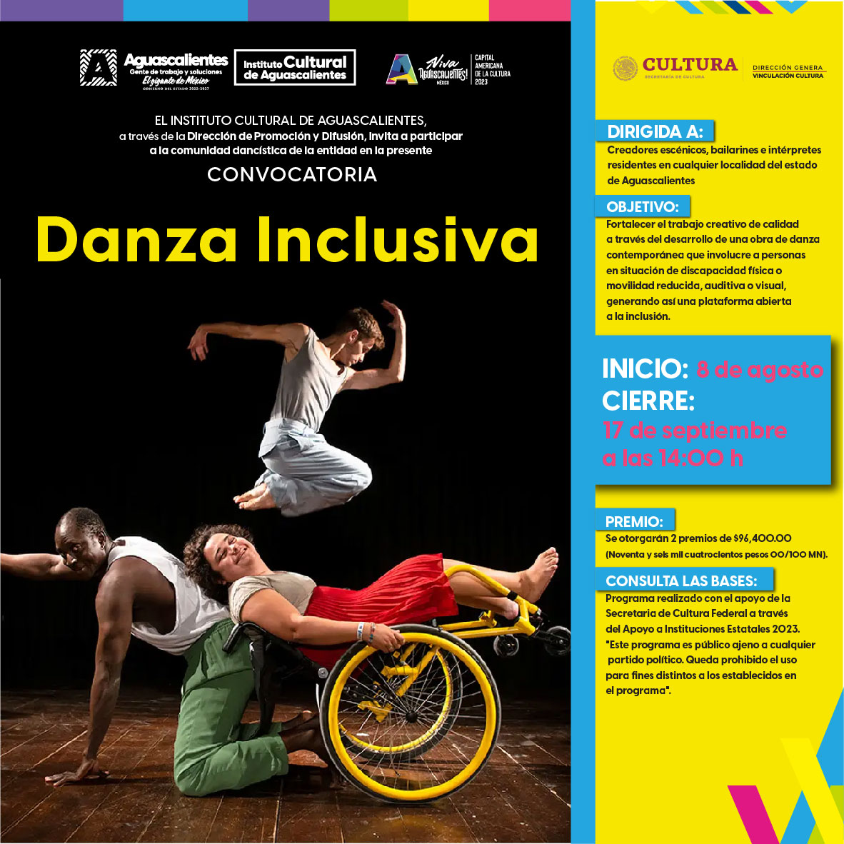 A toda la comunidad dancística de la entidad se les invita a participar en la convocatoria “Danza Inclusiva” desde el 8 de agosto hasta el 17 de septiembre a las 14h.