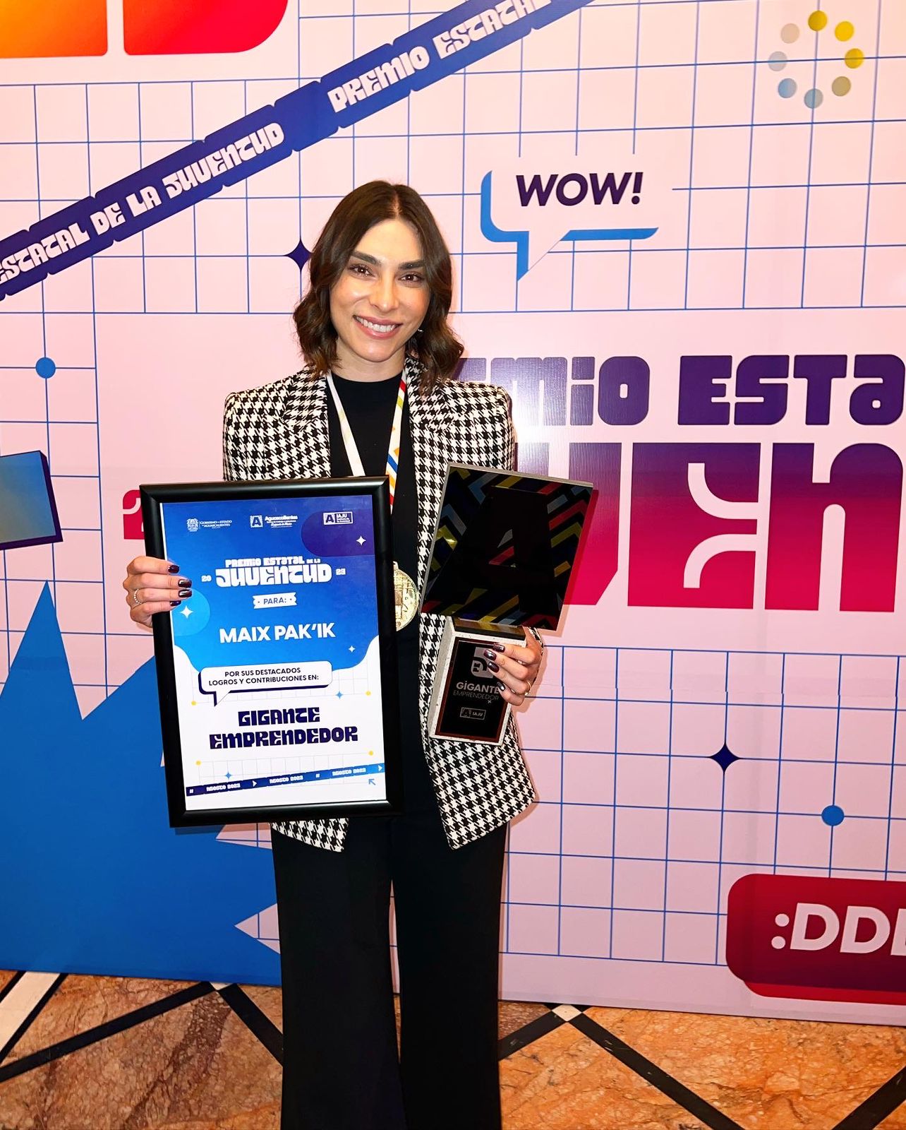 Carolina Arroyo Díaz Muñoz, princesa de la Feria Nacional de San Marcos 2023, recibió el Premio Estatal de la Juventud de este año en el giro de emprendimiento, lo cual es un gran logro, ya que compitió con otros jóvenes que también presentaron proyectos atractivos.