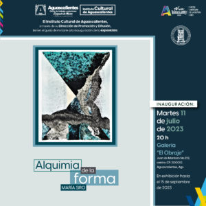 Te esperamos en la exposición “Alquimia de la forma” de María Siro, estará hasta el mes de septiembre en la Galería ” El Obraje”(Juan de Montoro N° 222, centro, Aguascalientes). ¡No te la pierdas!