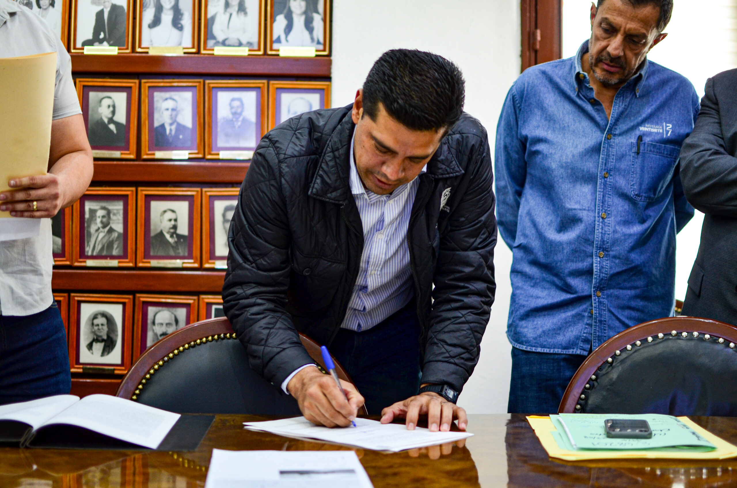 Participaron en esta firma de escrituras, el síndico procurador Héctor Hugo Aguilera Cordero; el secretario del H. Ayuntamiento y director general de Gobierno, Jaime Beltrán Martínez; titulares de las notarías 62. Roberto José Arellano Crespo, 61. José de Jesús Santana García, 65. José Martín Pelayo Pelayo, 73. Jorge Alberto González del Pozo, 56. Herberto Ortega Jiménez, así como representantes de las Notarías 27, 16 y 43.