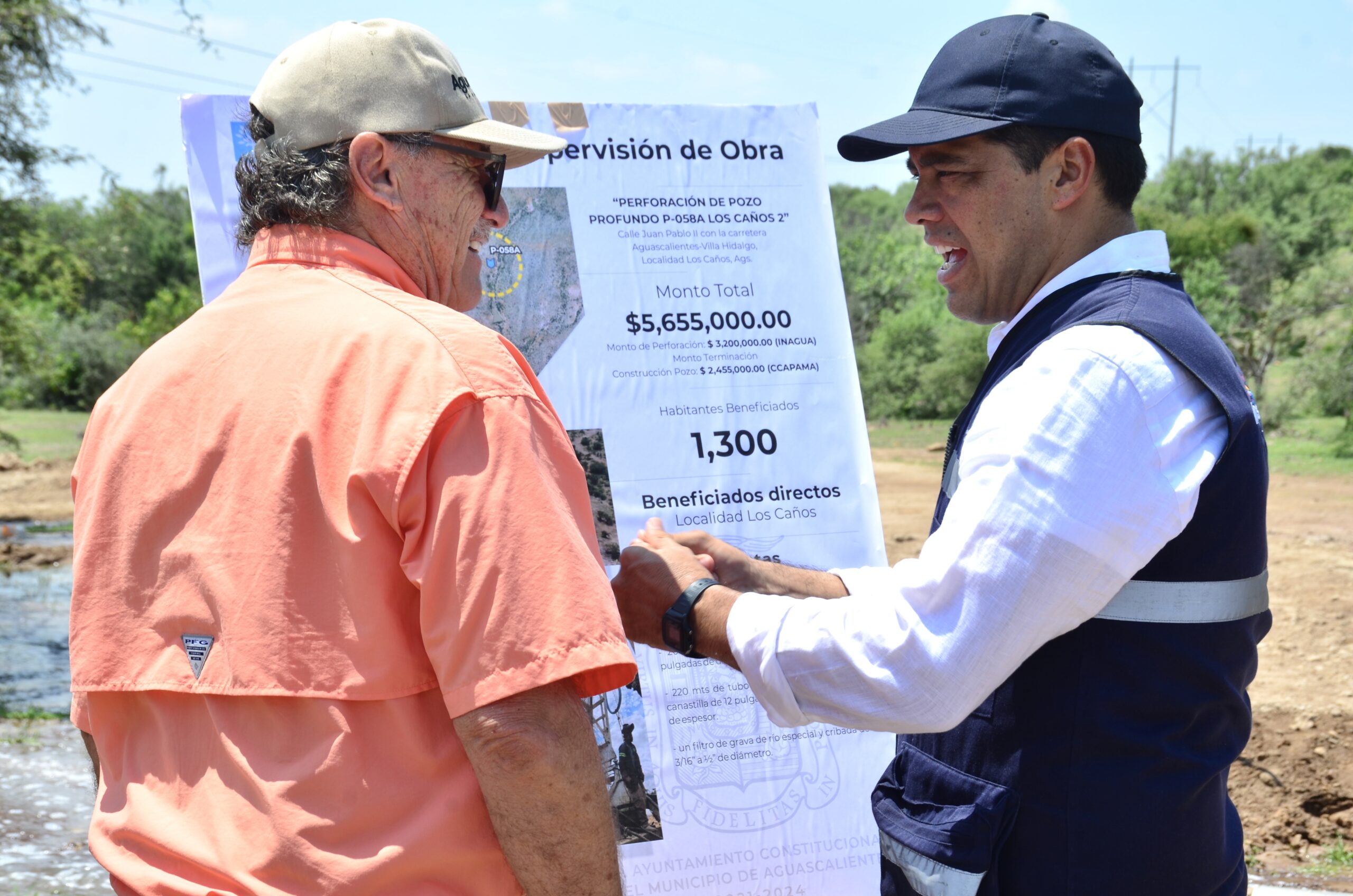 En compañía de pobladores de Los Caños, Leo Montañez comentó que gracias a la visión municipalista de la gobernadora Tere Jiménez, para esta obra de infraestructura hidráulica participa el Instituto del Agua del Estado (Inagua), con los trabajos de perforación.
