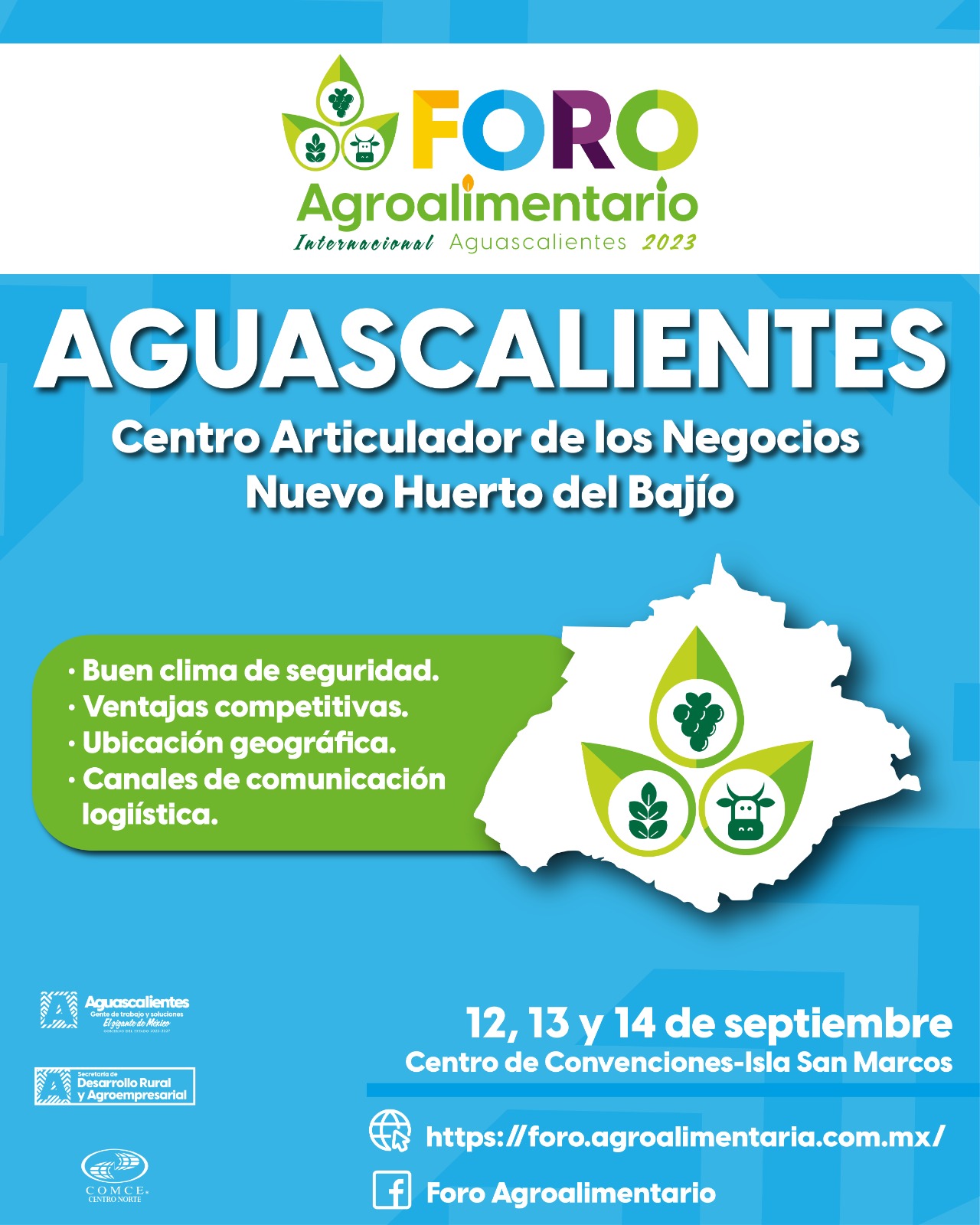 Más de 15 mil visitantes y aproximadamente 90 millones de pesos en derrama económica generará el Foro Agroalimentario Internacional Aguascalientes 2023, que durante los días 12, 13 y 14 de septiembre será un punto de encuentro para agroproductores, empresarios y académicos de México, Estados Unidos e Italia.