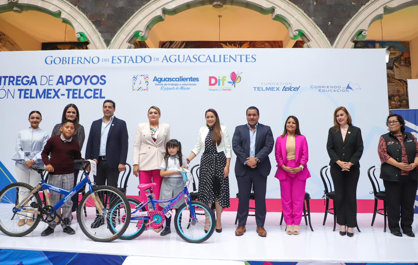 La gobernadora de Aguascalientes, Tere Jiménez, encabezó la entrega de apoyos del programa Corriendo por la Educación, que impulsa la Fundación Telmex-Telcel para mejorar la calidad de vida de las personas.