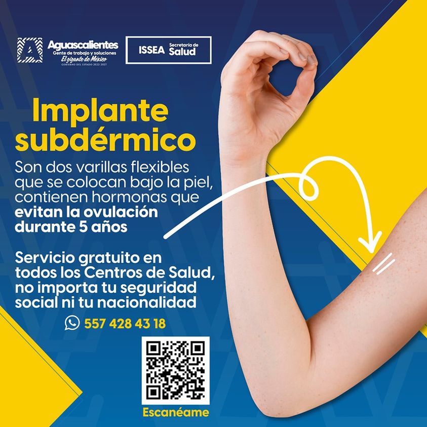 El implante subdérmico es uno de los métodos anticonceptivos y de planificación familiar que tenemos disponibles para ti en todos los Centros de Salud del ISSEA.