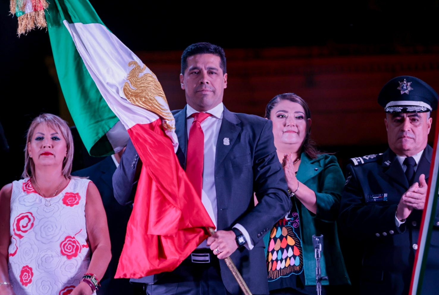 La noche de este 15 de septiembre el presidente municipal, Leo Montañez encabezó la ceremonia del 213 aniversario del Grito de Independencia en la explanada de la Delegación Morelos, donde honró a los héroes que nos dieron patria y libertad.