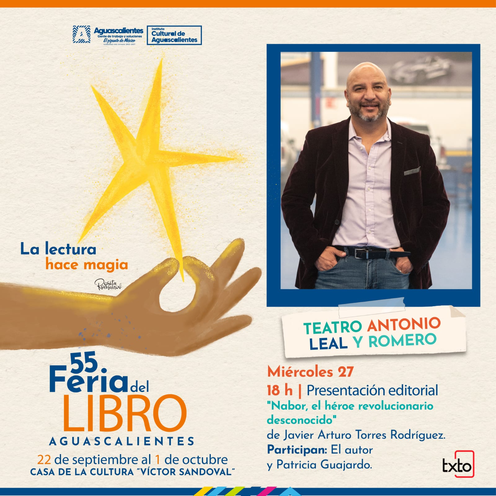 En el Teatro Antonio Leal y Romero se realizará la presentación editorial “Nabor, el héroe revolucionario desconocido” de Javier Arturo Torres Rodríguez a las 18:00 horas; así como la presentación editorial “El viejo de la danza” (Pie rojo Ediciones) de Juan Jesús Cervantes Montoya a las 19:00 horas.