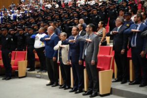La gobernadora Tere Jiménez y el presidente municipal de Aguascalientes, Leo Montañez, entregaron medallas y reconocimientos al mérito policial a...