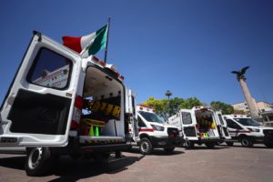 La gobernadora de Aguascalientes, Tere Jiménez, recibió de parte de la Administración del Patrimonio de la Beneficencia Pública nuevas ambulancias...