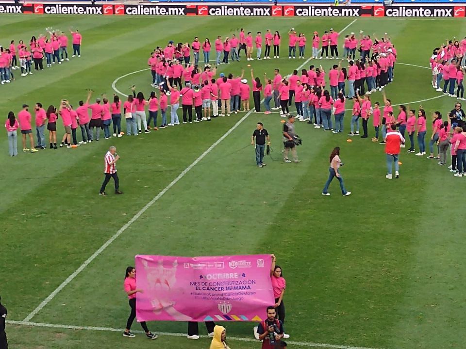 A fin de prevenir el cáncer de mama, el IMSS, ISSSTE e ISSEA se suman para llevar a cabo una campaña de concientización, además de formar un lazo rosa en los partidos de futbol que se celebran durante este mes.