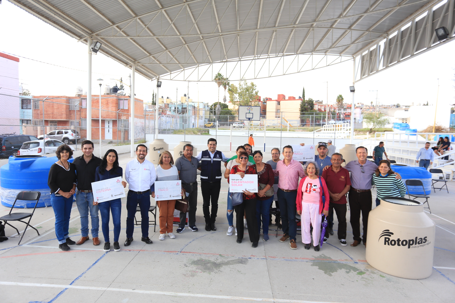 En las instalaciones del Deportivo Fidel Velázquez, el presidente municipal, Leo Montañez llevó a cabo la entrega simbólica de 58 insumos para viviendas, como tinacos, cisternas, calentadores y otros, que elevan la calidad de vida de los habitantes del municipio.