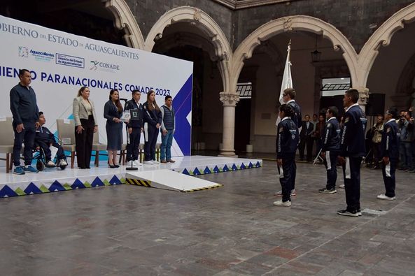 La presidenta del Sistema DIF Estatal, Aurora Jiménez Esquivel, asistió al abanderamiento de los atletas que representarán al estado de Aguascalientes en los paranacionales de CONADE 2023.