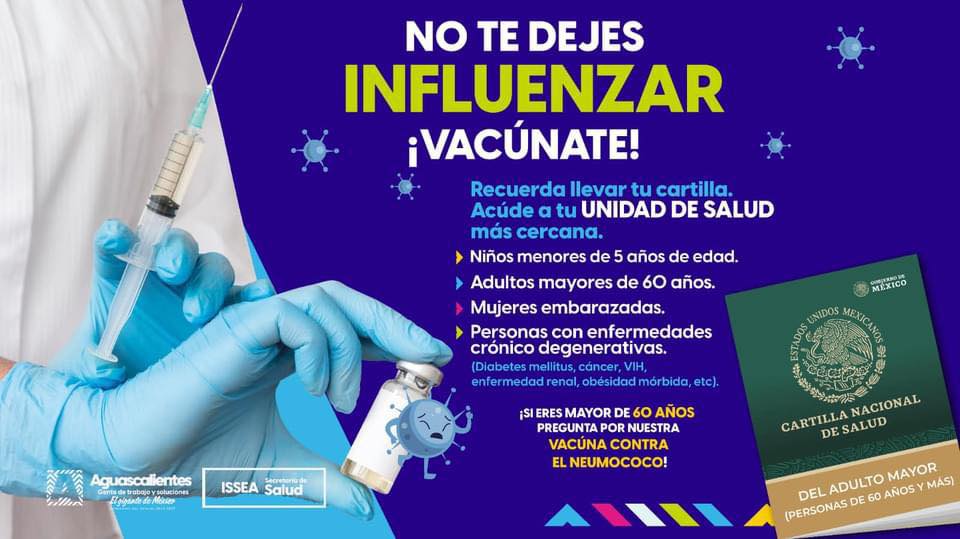 Seguimos invitando a la ciudadanía a acudir a su Centro de Salud más cercano a aplicarse la vacuna contra la influenza estacional para prevenir esta enfermedad durante la temporada de frío.