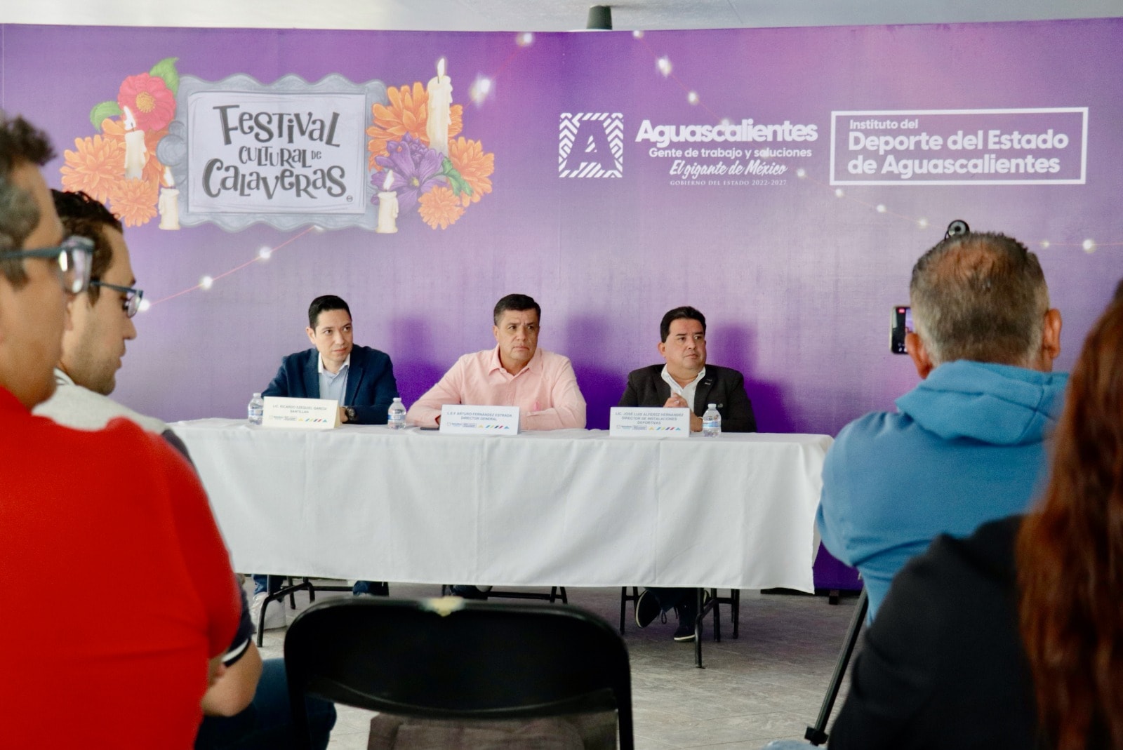 El Director General del Instituto del Deporte del Estado de Aguascalientes, el L.E.F. Arturo Fernández Estrada en conjunto con cada uno de los presidentes de las asociaciones y comités organizadores de los eventos que conforman el Programa Deportivo del Festival Cultural de Calaveras dieron a conocer los detalles de cada una de estas competencias.
