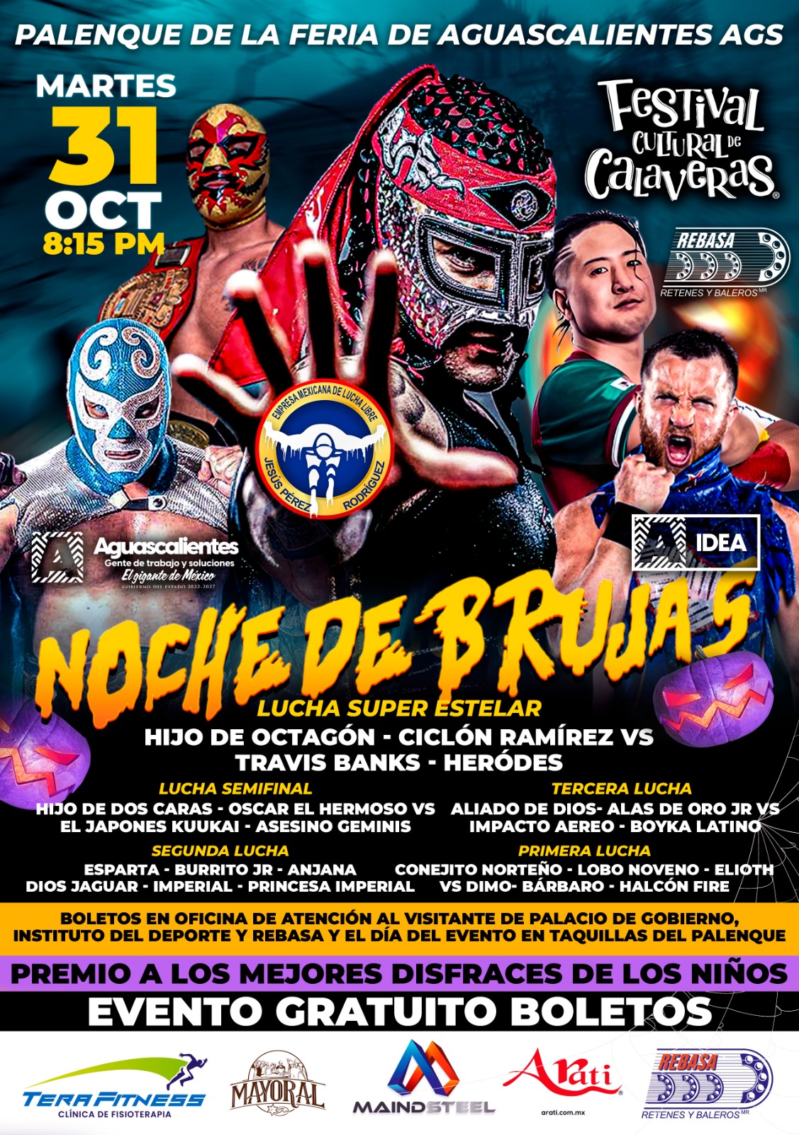 Ven por tus BOLETOS GRATIS para la función de Lucha Libre “Noche de Brujas” este martes 31 de octubre