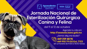 Del 9 al 12 de octubre, tendremos una jornada de esterilización canina y felina en el municipio de Aguascalientes. Haz...
