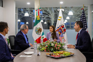 La gobernadora de Aguascalientes, Tere Jiménez, sostuvo una reunión de trabajo con el presidente de la Cámara de Comercio México-Estados...