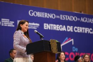La gobernadora de Aguascalientes, Tere Jiménez, encabezó la entrega de certificados del programa “De Corazón por la Educación” a jóvenes...