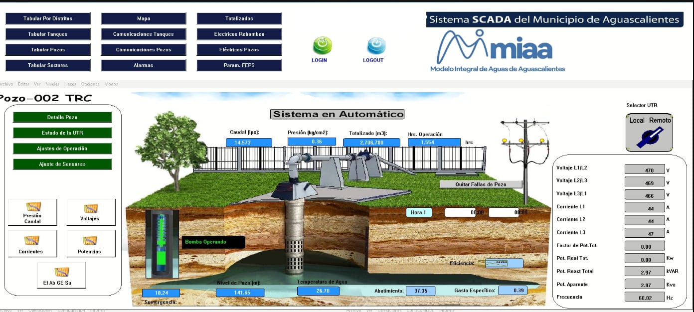 Como parte de la supervisión permanente de los pozos de agua del municipio capital, el Modelo Integral de Aguas de Aguascalientes (MIAA), opera un moderno Sistema de Telemetría, el cual automatiza la operación de todos ellos y permite en tiempo real su monitoreo para detectar alguna falla en las bombas y vía remota ponerlos nuevamente en funcionamiento.