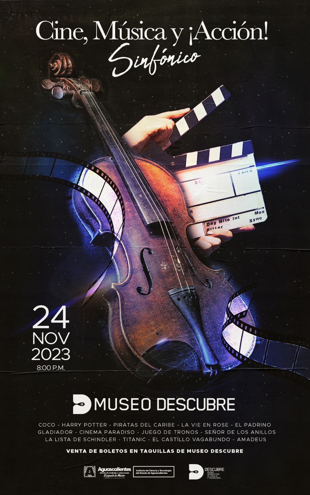 Si eres fan del cine, no te puedes perder “Cine, Música y Acción”; el Museo Descubre te invita al concierto sinfónico que se realizará el próximo 24 de noviembre a las 20:00 horas con las mejores melodías de la pantalla grande, a cargo de un grupo de 18 músicos en el escenario.
