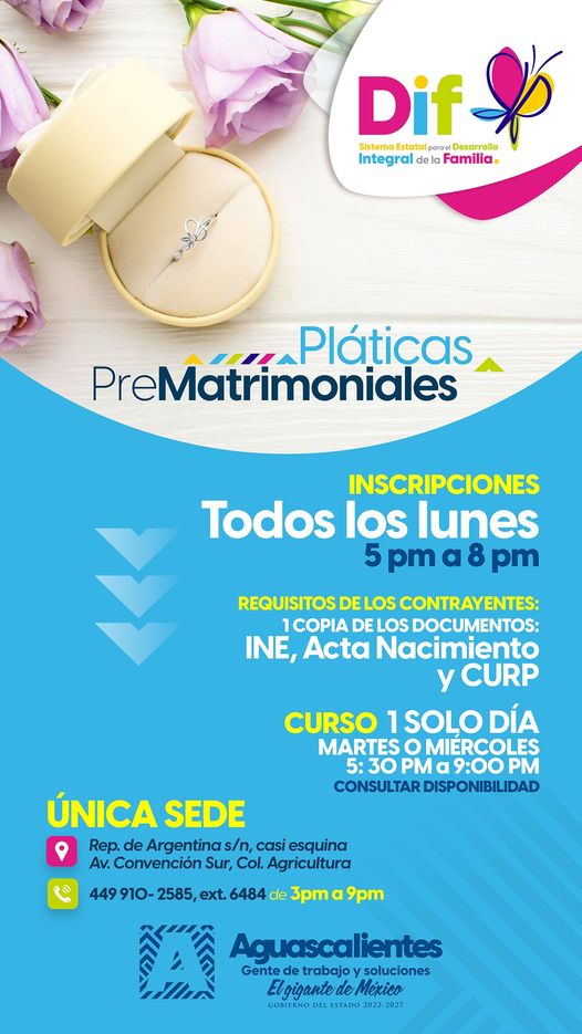 Acude a tu curso de pláticas prematrimoniales en el Sistema DIF Estatal, las inscripciones son todos los lunes de 17:00 a 20:00 horas.
