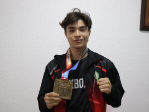 El Director General del Instituto del Deporte de Aguascalientes el LEF. Arturo Fernández Estrada felicita a Diego Durón por su...