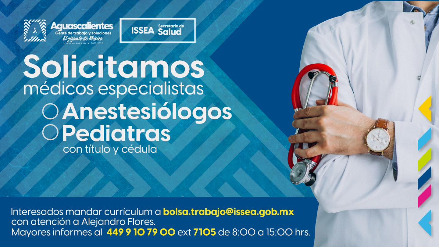 Si eres anestesiólogo o pediatra y deseas trabajar en el ISSEA, esta información te podría interesar.