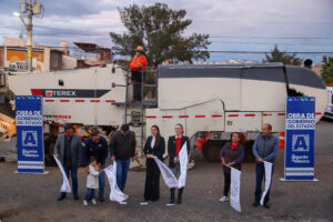 La gobernadora de Aguascalientes, Tere Jiménez, puso en marcha la rehabilitación de la carpeta asfáltica en la Av. Paseo de...