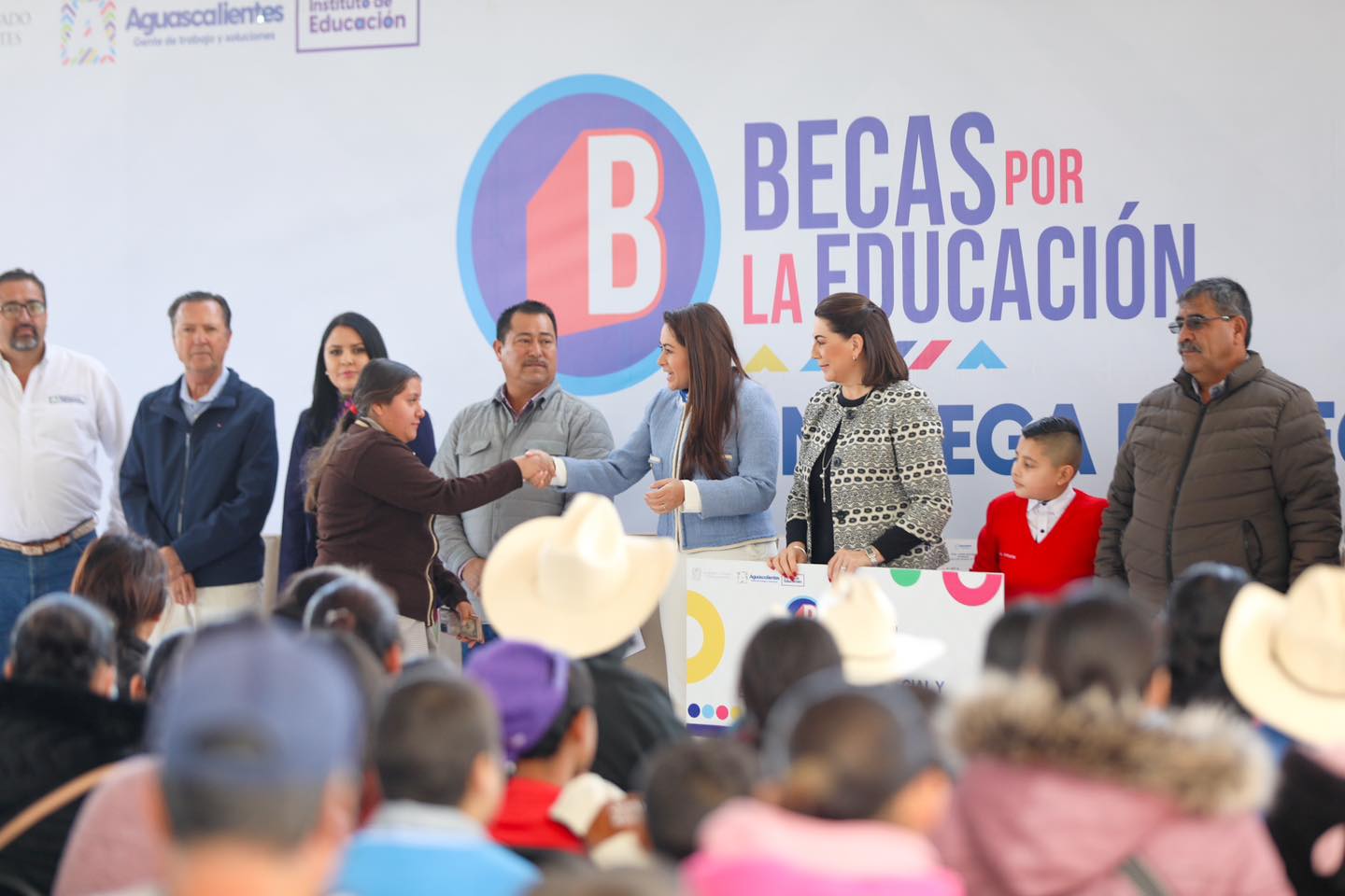 La gobernadora de Aguascalientes, Tere Jiménez, continúa con la entrega de becas a estudiantes de todo el estado, por lo que hoy visitó el municipio de El Llano, en donde entregó más de 500 de estos estímulos a niños, adolescentes y jóvenes en apoyo al transporte, titulación o para costear gastos escolares.