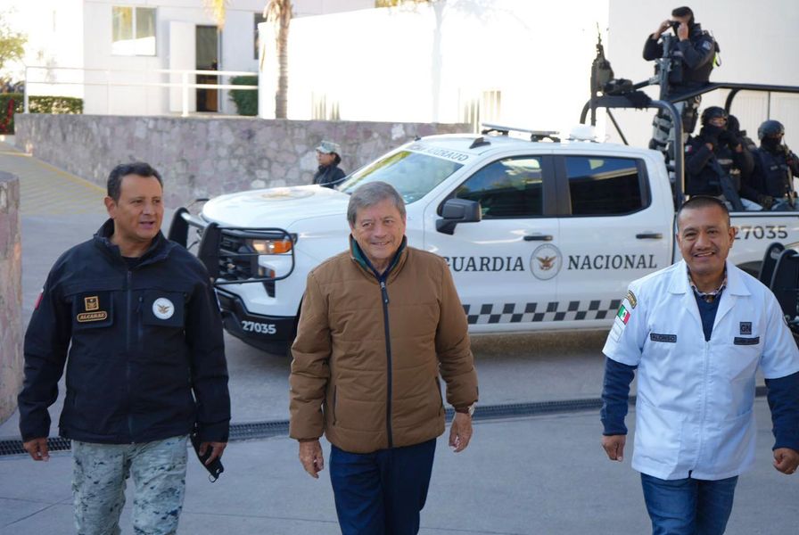 El secretario de Salud del Estado, Rubén Galaviz Tristán, se reunió con el comisario Leonel Alcaraz Alarcón, coordinador estatal de la Guardia Nacional en Aguascalientes, para trabajar en conjunto y seguir desarrollando programas de salud en beneficio de la población hidrocálida.