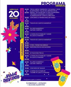 Te compartimos las actividades del día de hoy miércoles 20 de diciembre que tendremos en #VillaNavidad. ¡Te esperamos!