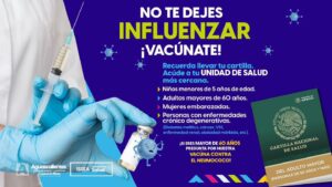 Te seguimos invitando a acudir a tu Centro de Salud más cercano para aplicarte la vacuna contra la influenza y prevenir enfermedades respiratorias, reducir la gravedad de los síntomas o evitar complicaciones.