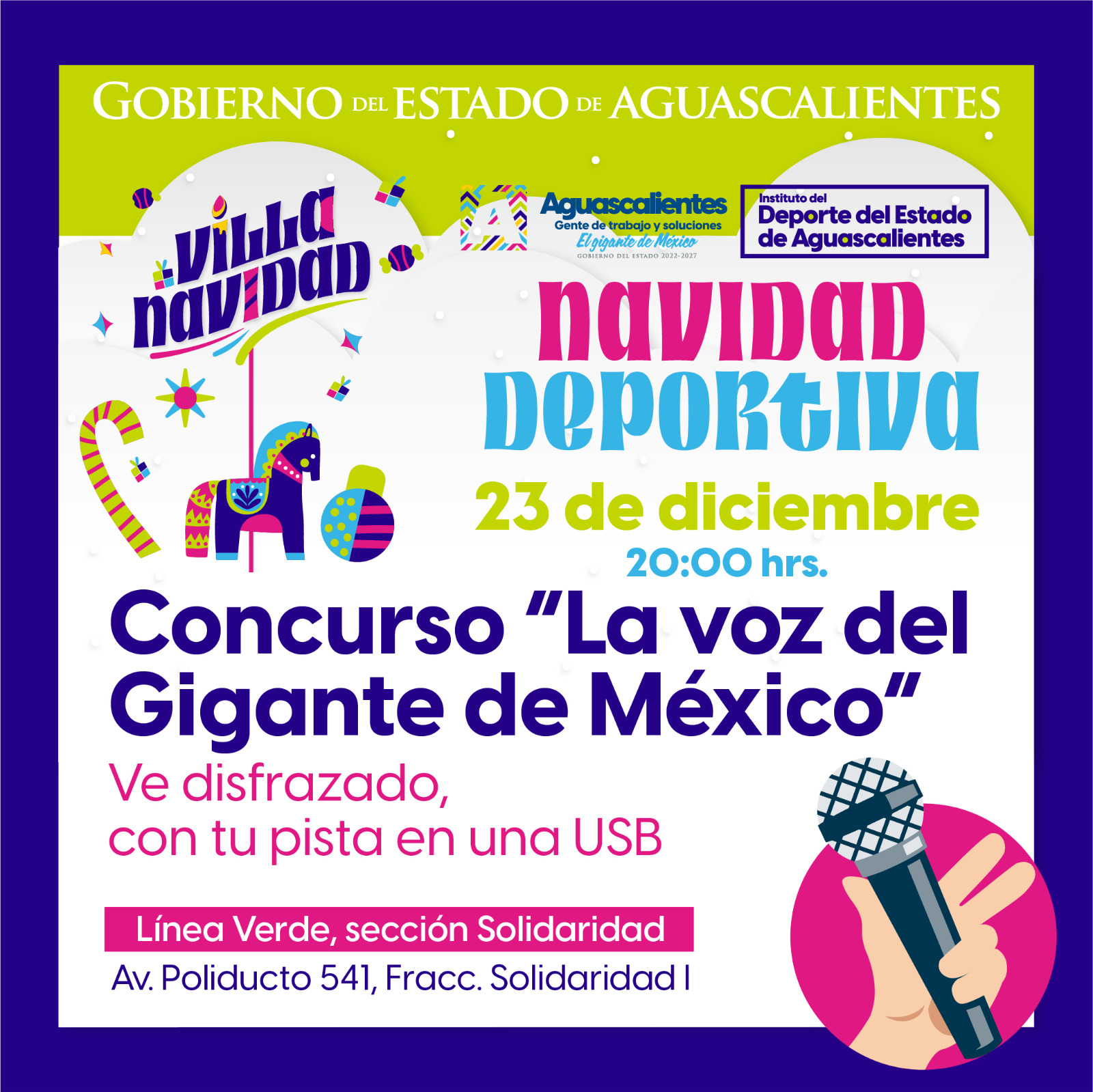 Participa en el concurso “La Voz del Gigante de México” este sábado 23 de diciembre en punto de las 20:00 hrs. Te esperamos en Villa Navidad ubicada en la Línea Verde, sección Solidaridad.